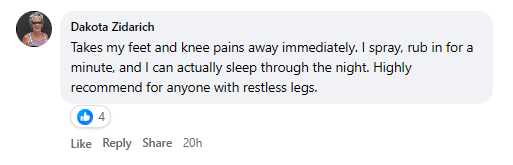 "This has been a blessing. My legs used to feel like they were buzzing at night—now, just a few sprays and I can finally rest. After 30 years of struggling, I have relief."